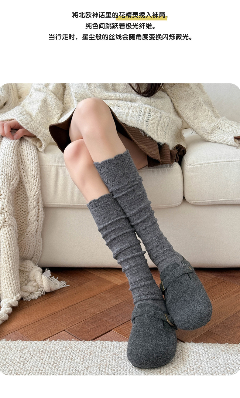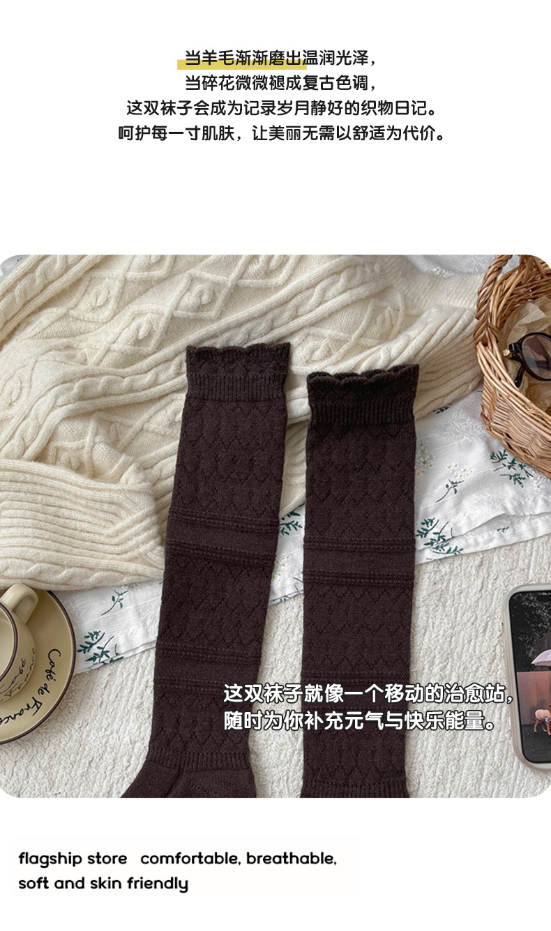 Утолщенные шерстяные носки для женщин осенью и зимой, теплые однотонные носки средней длины, носки с двойной иглой и тонкой полоской