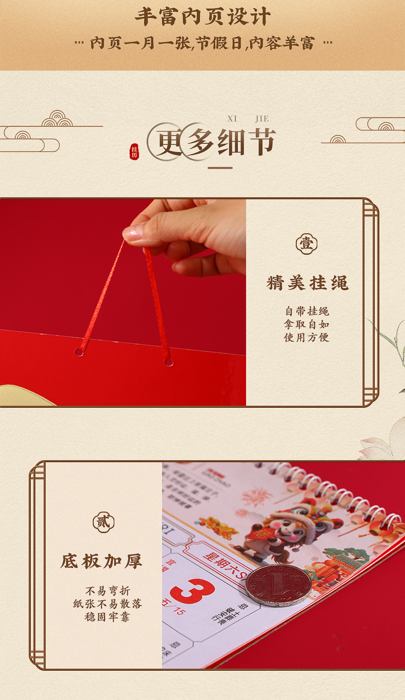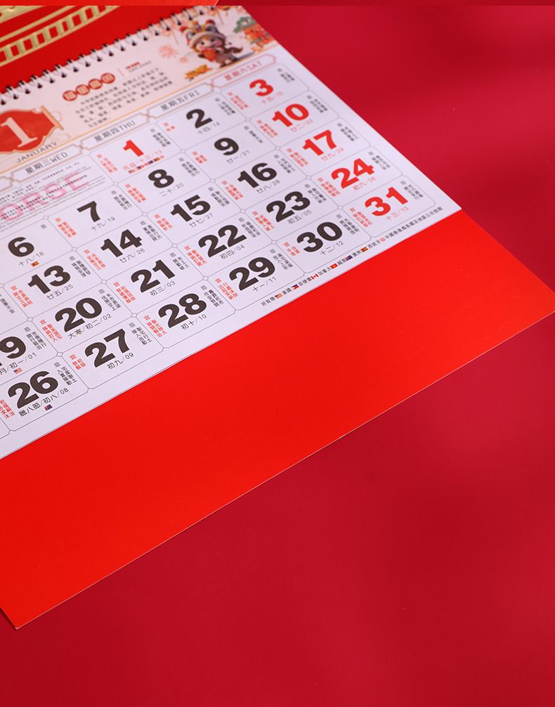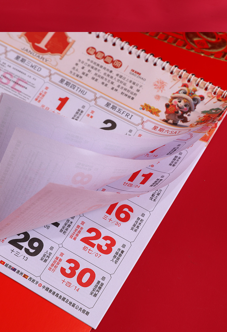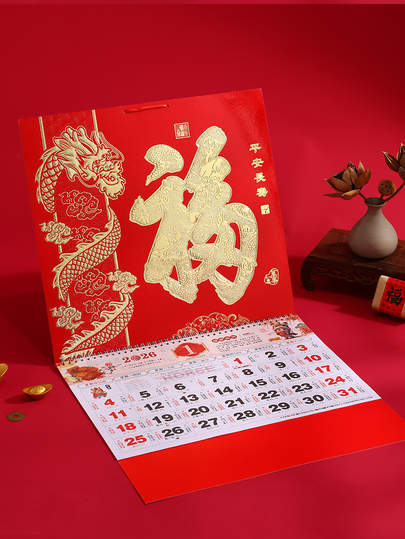 2026 Год Лошади Производитель Оптовая продажа Положительный шестираздельный золотой фольгированный ярлык Печатаемый рекламный горячий штампованный логотип Настенный календарь Настольный календарь