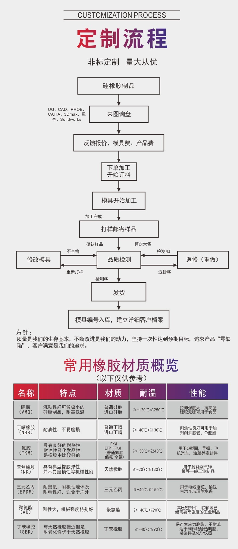 材质可选:食品级硅胶、丁晴橡胶、三元乙丙橡胶、天然胶、氟橡胶等其他硅橡胶。