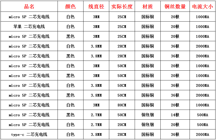 4.特别说明,此线只能充电,不能传数据(只充电是2芯线,能传数据是4芯线)