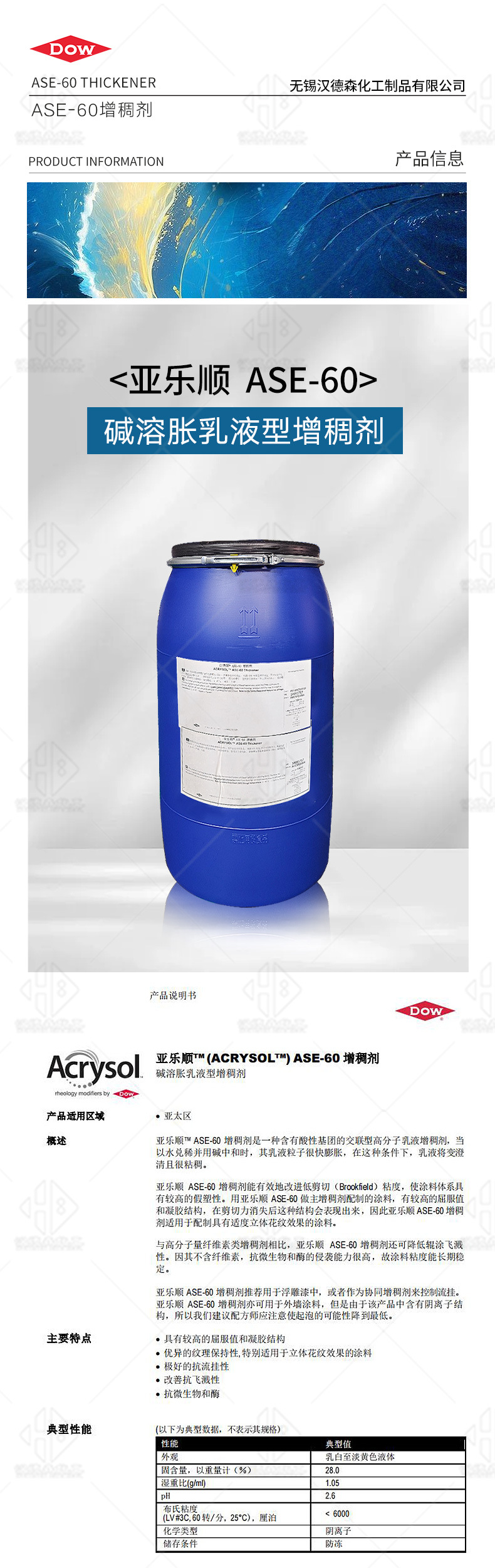 Dow Rohmon Haas Alesun алкали-увлажняющий загуститель ACRYSOL ASE-60 для водно-дисперсионных покрытий