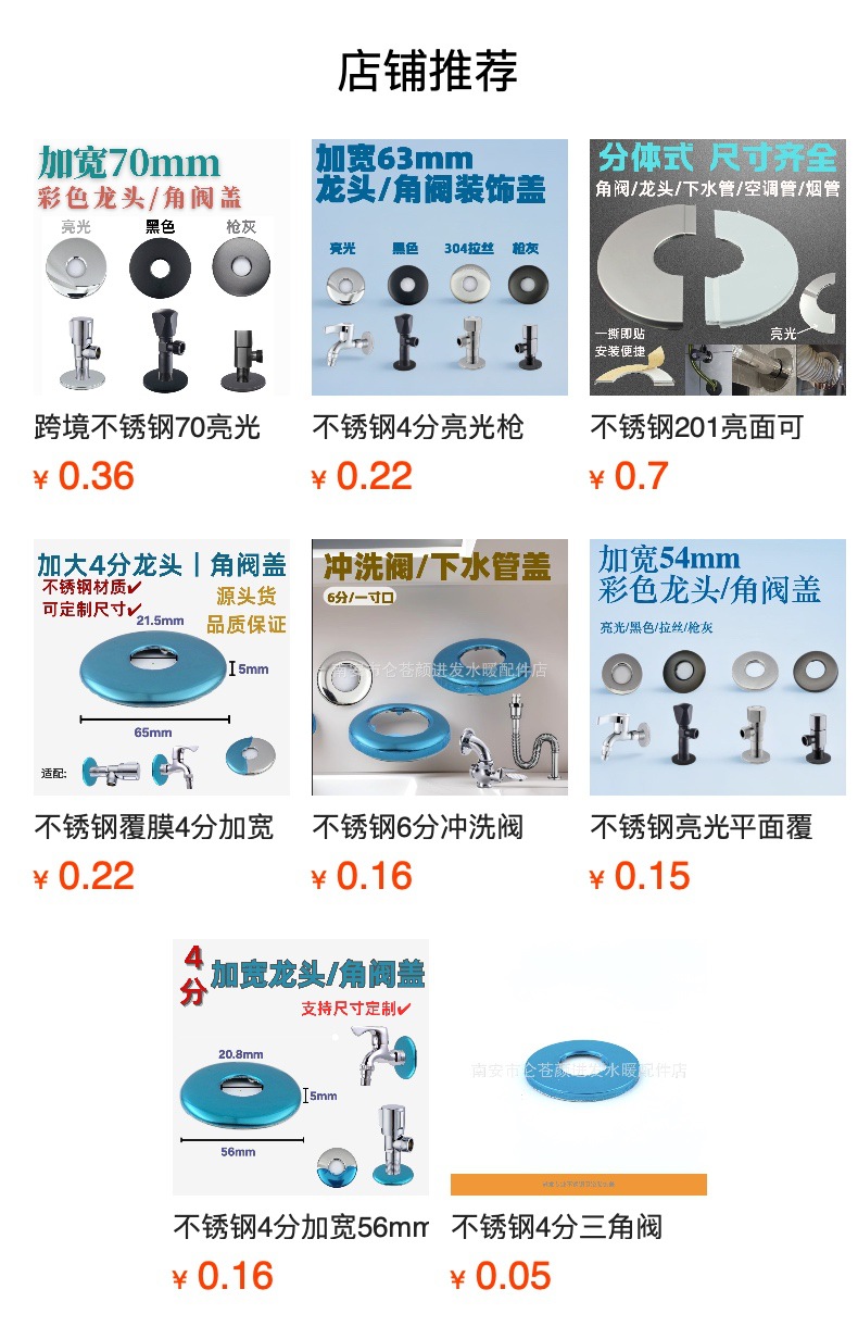 .本品采用201不锈钢材质加工而成,产品表面经抛光覆膜处理,物美价廉。适合搭配各种款式的4分三角阀和龙头使用。