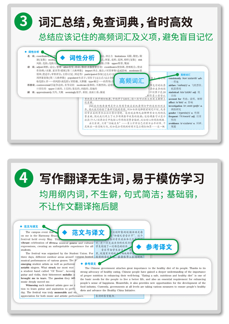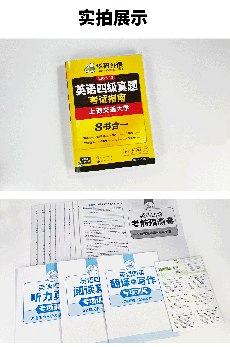 3. 八书合一,快速提分,同步突破听力+阅读+翻译+写作+真题+预测+词汇+口语考试;