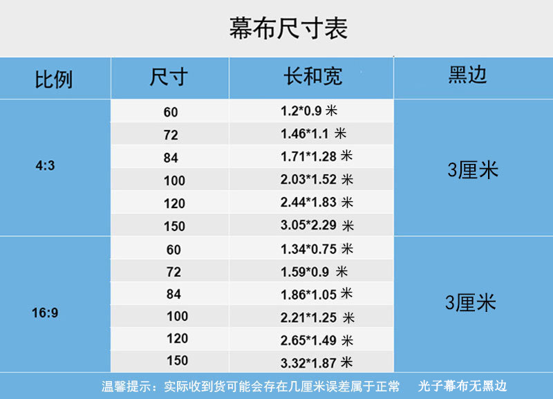 ![]() | Thickened white glass fiber storage (72 inch 16:9) | ¥150.0 / ≈ 1 825 ₽ | 100000 | 4809133875301 | |