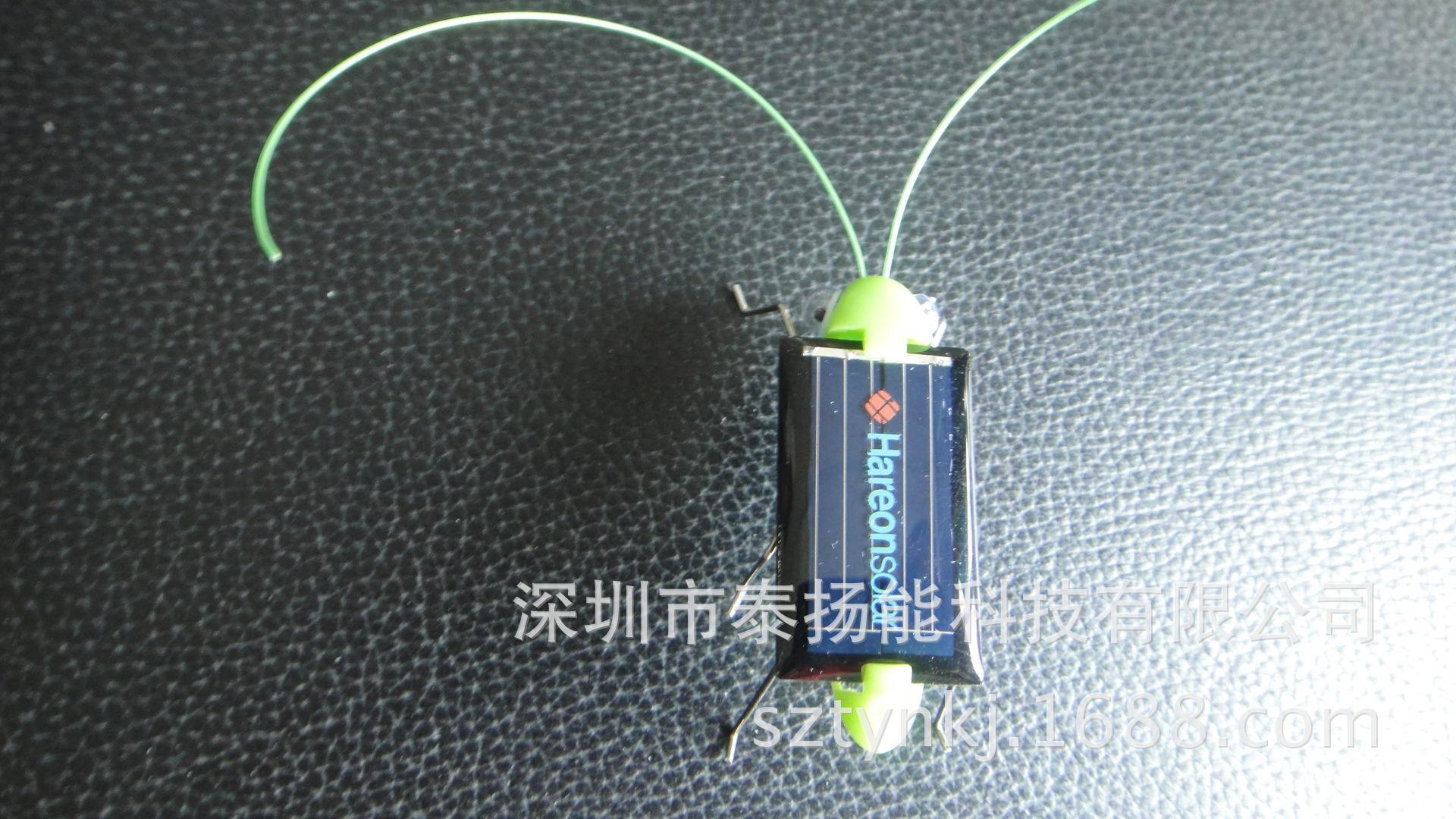 该产品采用太阳能供电技术,不用蓄电池,在太阳光下直接驱动微型振动电机达到产品特定的振动效果 ,产品特点在太阳光直射下太阳能蚂蚱可以全身抖动,好似要出击扑食一般,产品即新颖独特,环保节能,又是学校启蒙学生太阳能概念的良好教学用品.