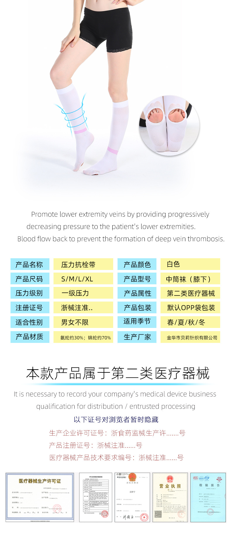 Компрессионные чулки, против тромбообразования, медицинские, средней длины
