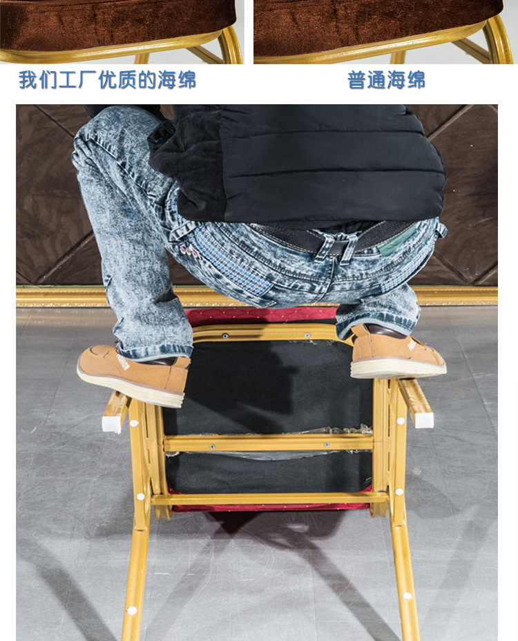 油漆:椅架表面经过磷化处理,喷金黄色静电喷涂,不褪色,不掉漆。