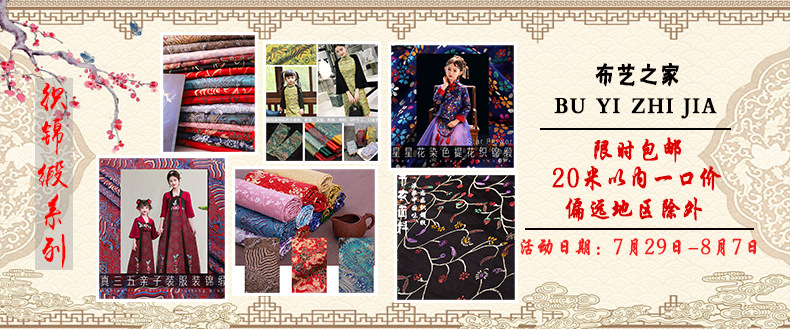 布艺之家专业生产织锦缎,严格把关产品质量,用优选的产品和实惠的价格期待与新老客户长久的合作!欢迎广大新老客户进店采购咨询!布艺之家专注打造更好的电商服务,您的满意是我们永恒的追求!