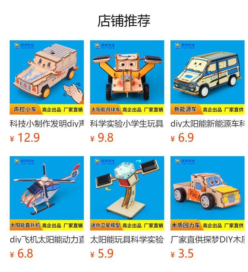 📦 | Solar car (material package) | 3шт: ¥6.90, 100шт: ¥5.40, 500шт: ¥3.90 | 49197 | 5339551012585 |