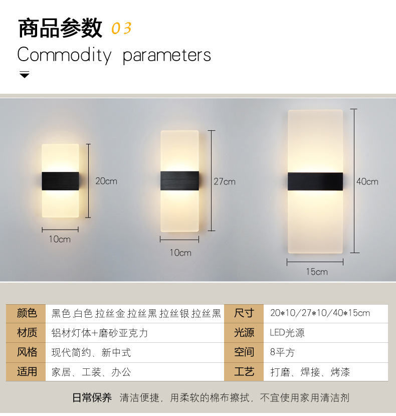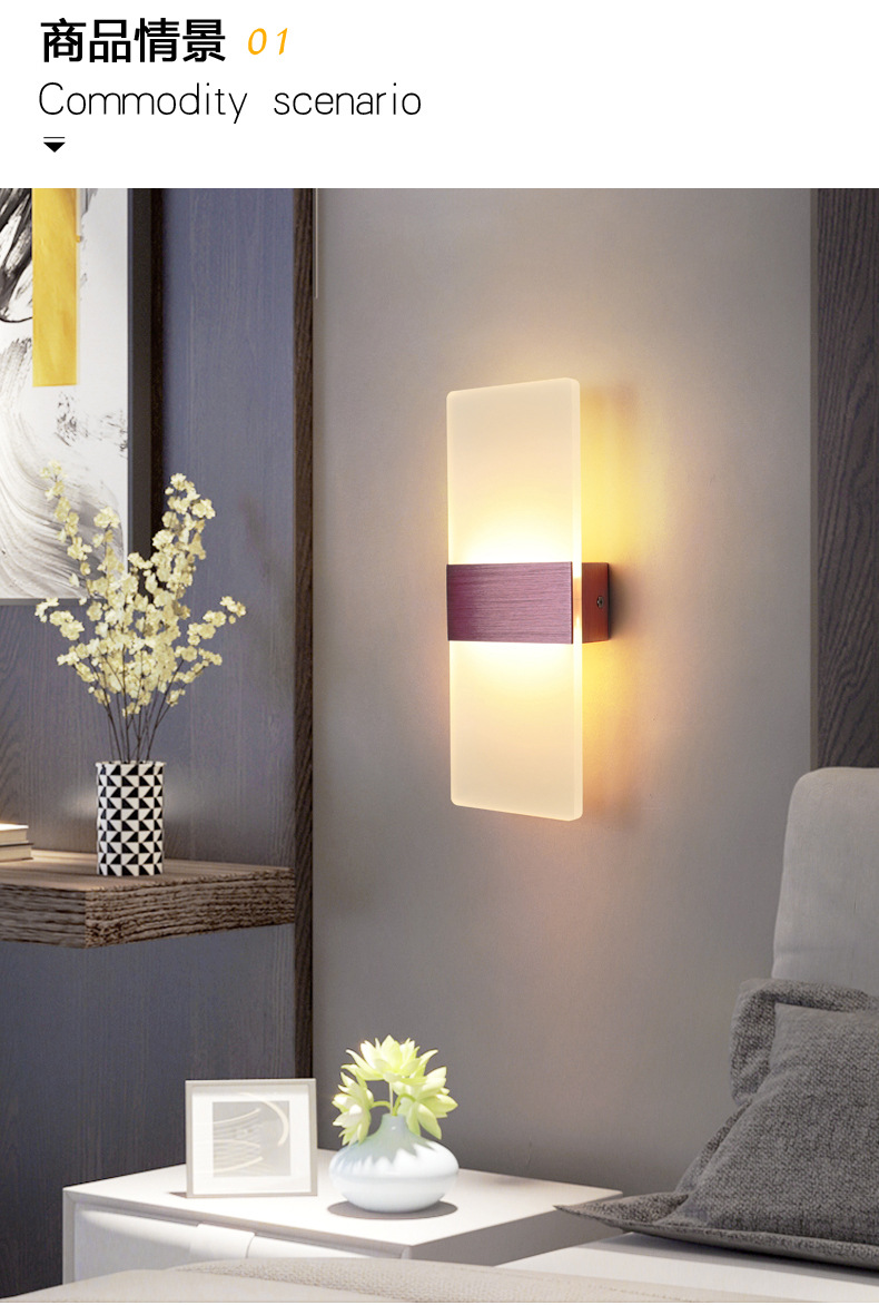 Акриловый настенный светильник LED, простой светильник для спальни, светильники для гостиниц и коридоров