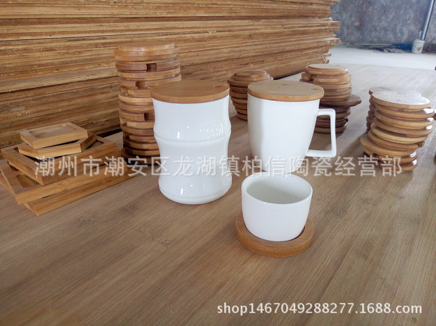 Прямые продажи завода, керамическая кружка с крышкой из бамбука и дерева, стеклянная крышка для логотипа