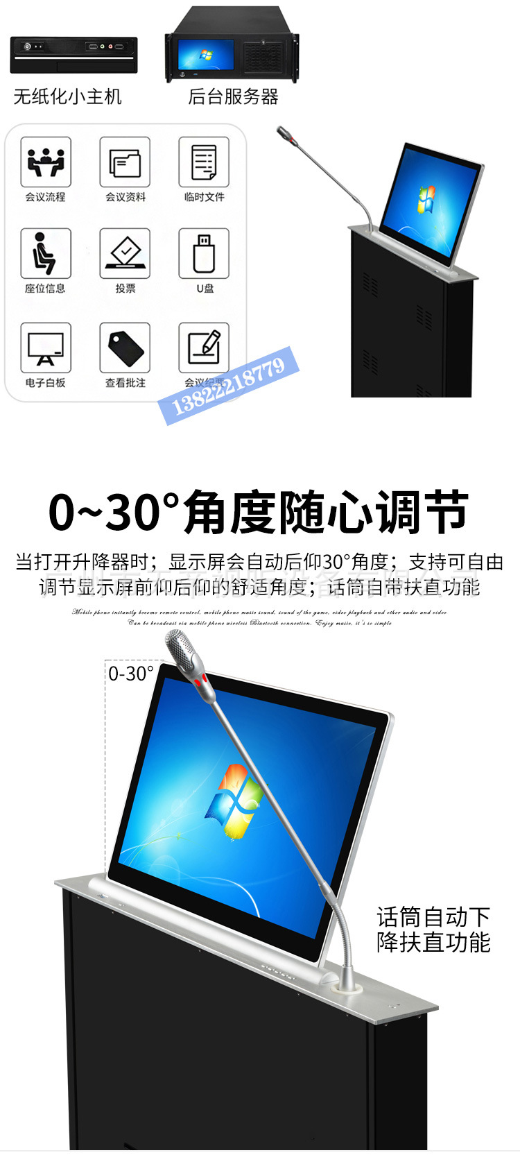 Ультратонкий подъемник LCD 18.5" с микрофоном для конференций