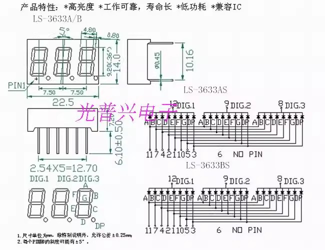 厂家直供0.36英寸3位LED数码管 高亮红色 3631BS共阳/3631AS共阴