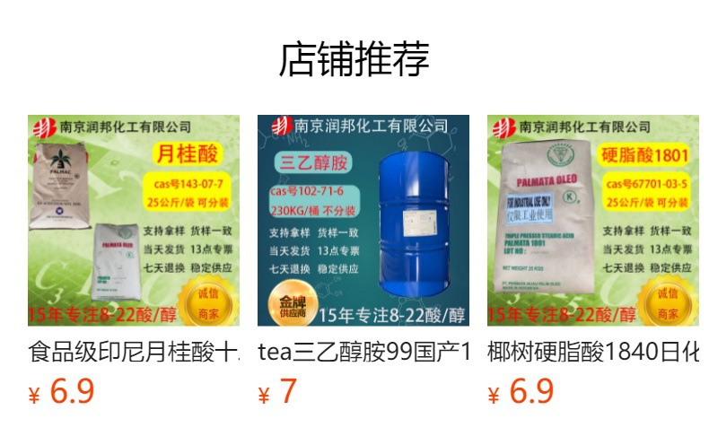 - 用途:适用于日用、工业洗涤剂,造纸助剂及化纤油剂等的合成或复配,生产二月桂酸二丁基锡;生产椰子油酸聚氧乙烯酯,生产表面活性剂咪唑啉,也是洗衣液,表面活性剂,纺织油剂等行业的首选;