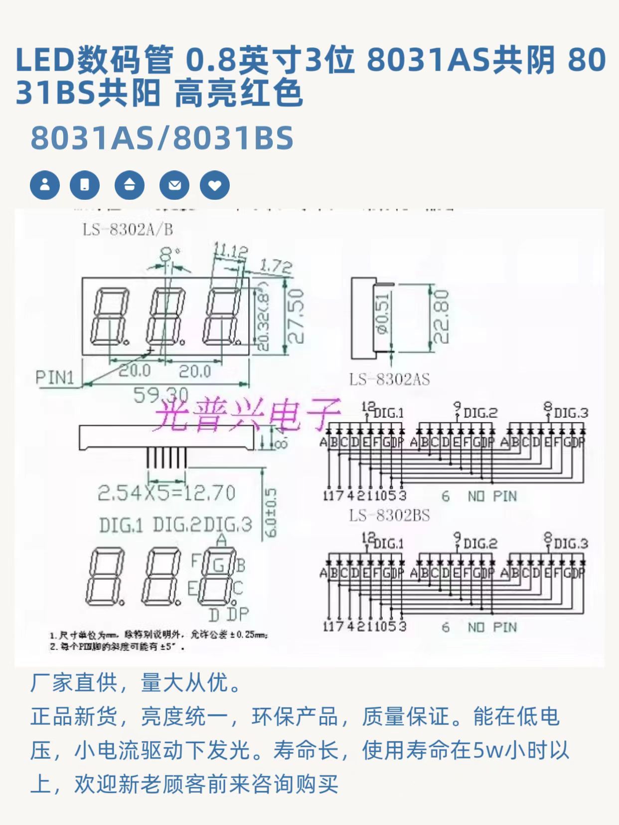 Прямые поставки светодиодной цифровой трубки 0.8 дюйма 8031AS 8031BS