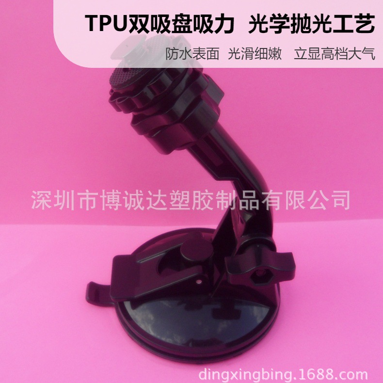 TPU双吸盘,最大的优势是不仅能吸附在光滑物体表面,还能吸附在不光滑物体表面(如有木纹、皮纹的表面等), 而PVC吸盘只能吸附在光滑物体表面。