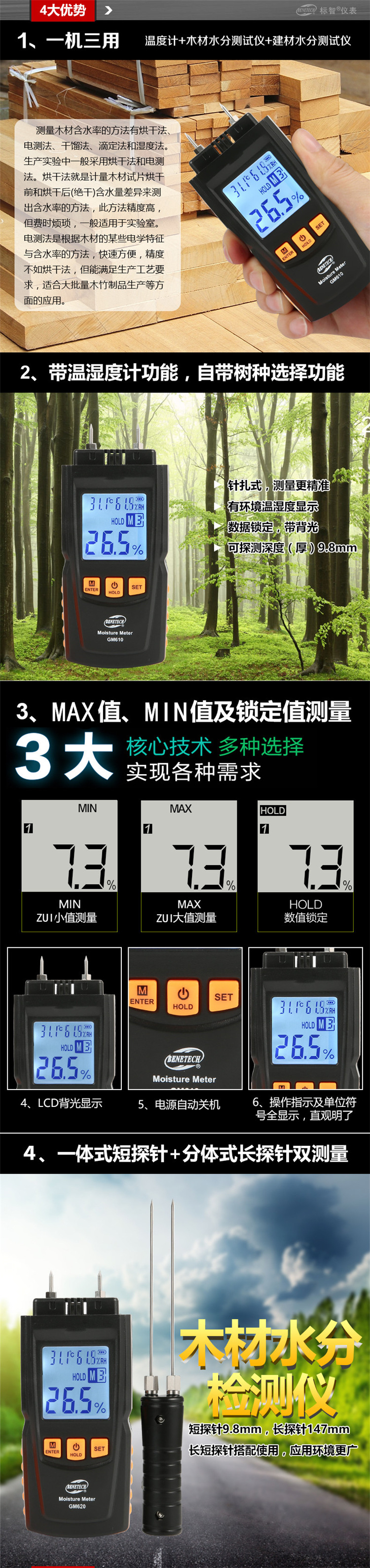 Измеритель влажности древесины Biaozhi GM605