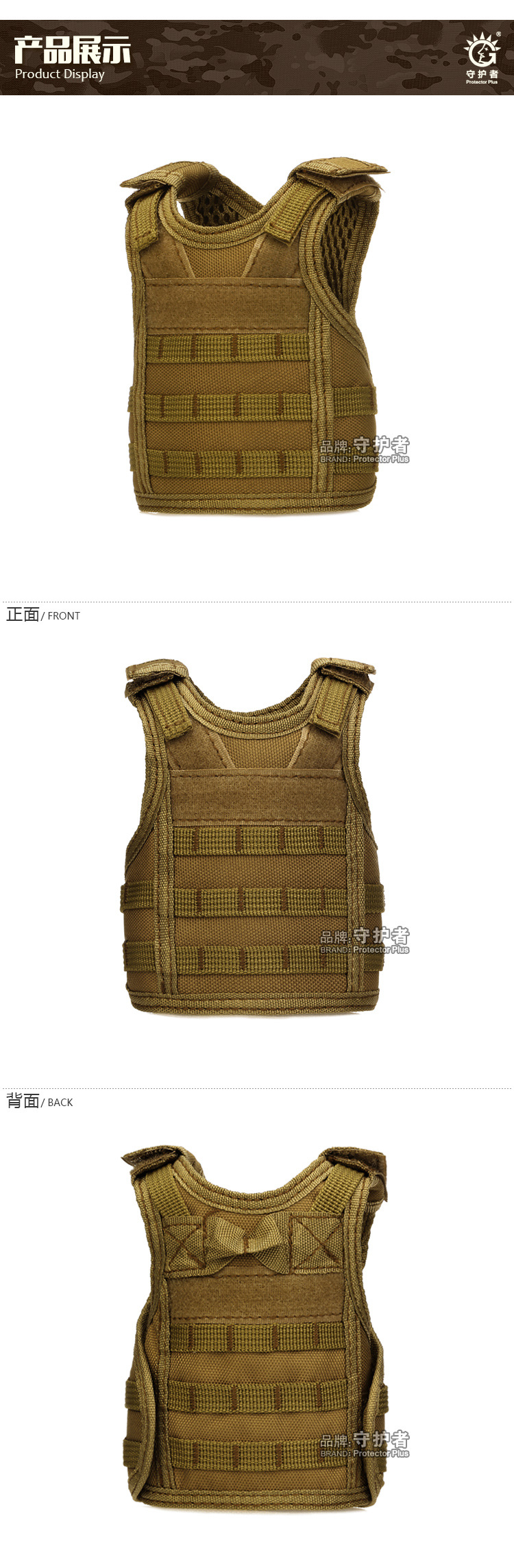 守护者箱包厂是一家专业设计、生产、销售户外背包、腰包、胸包、斜挎包、腰带、背心等产品的诚信经营商家。守护者箱包厂拥有完整、科学的质量管理体系。自设有生产工厂,多名老员工在户外产品领域有着丰富的设计、生产经验,所有材料和配件均质量上乘符合相关标准,我们秉承专业敬业的精神,为客户提供好的产品和服务等优势占有市场,在产品的设计、包装、质量上不断的提升,获得大批客户的认可,产品远销海外。守护者箱包厂专门为国内外贸易公司、实体店、国内外网上���铺(速卖通、EBAY、WISH、亚马逊、天猫,淘宝C店,京东,拍拍)、军迷户外用品商家、箱包行业创业者等供应大量现货。本厂拥有守护者/Protector Plus户外品牌,考虑部分老客户拥有自主品牌,我们的产品除了吊牌没有任何中文标示、您可自定义品牌;并接受来样加工生产、贴牌、定制等,如有任何问题可在线联系我们客服旺旺,如果您对我们的产品有任何感受、想法或建议,欢迎随时提出!