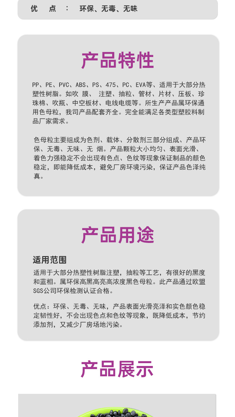 Универсальный черный мастербатч с высоким блеском PP PE ABS, черный цвет для выдувного формования, экологически чистый, высококонцентрированный
