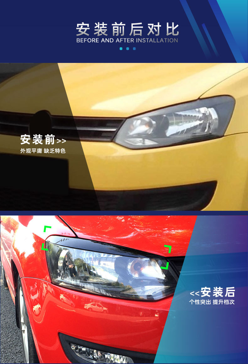Подходит для нового Volkswagen Polo 2010-2017, наклейки на брови фар, модификация