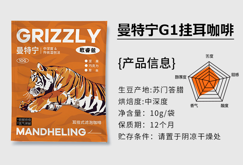 📦 | Gruiz Tiger Mantein Hanging Ear Coffee 10g | 2шт: ¥2.00, 2000шт: ¥1.90, 10000шт: ¥1.70 | 97206 | 5430766909755 |
