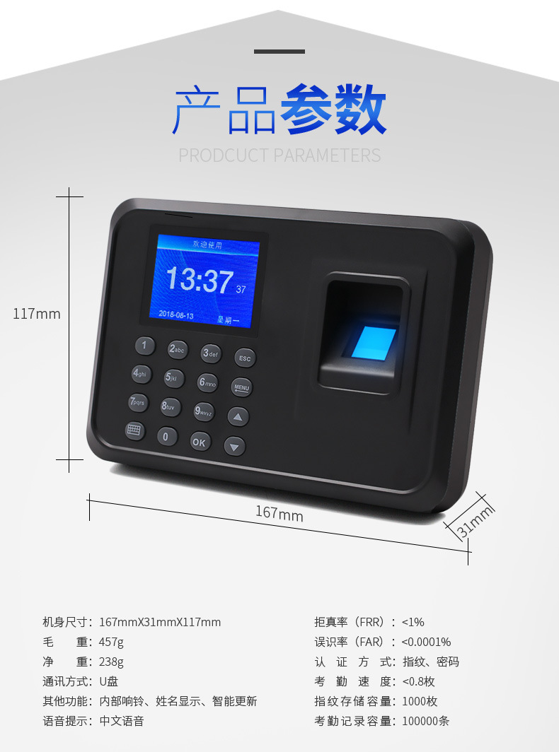 Машина для учета рабочего времени Dongwei F01, умный учет, 25 языков, отчет о входе
