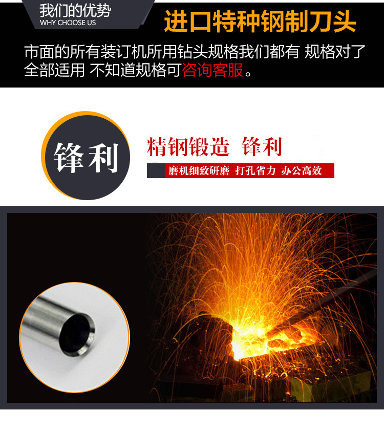 优质钢材精加工制成,使排纸屑畅通,经久耐用适用国产及进口各种品牌胶管装订机. 我厂有各种规格的财务装订机空芯钻头,请顾客朋友们买的时候留言备注尺寸。我们可以给你配到合适机器使的钻头。可根据客户要求定做各种规格空心钻刀哦 各种规格的财务装订机空芯钻头我们都有,请顾客朋友们买的时候留言说机器型号。我们可以给你配到合适机器使的。 可根据客户要求定做各种规格空心钻刀