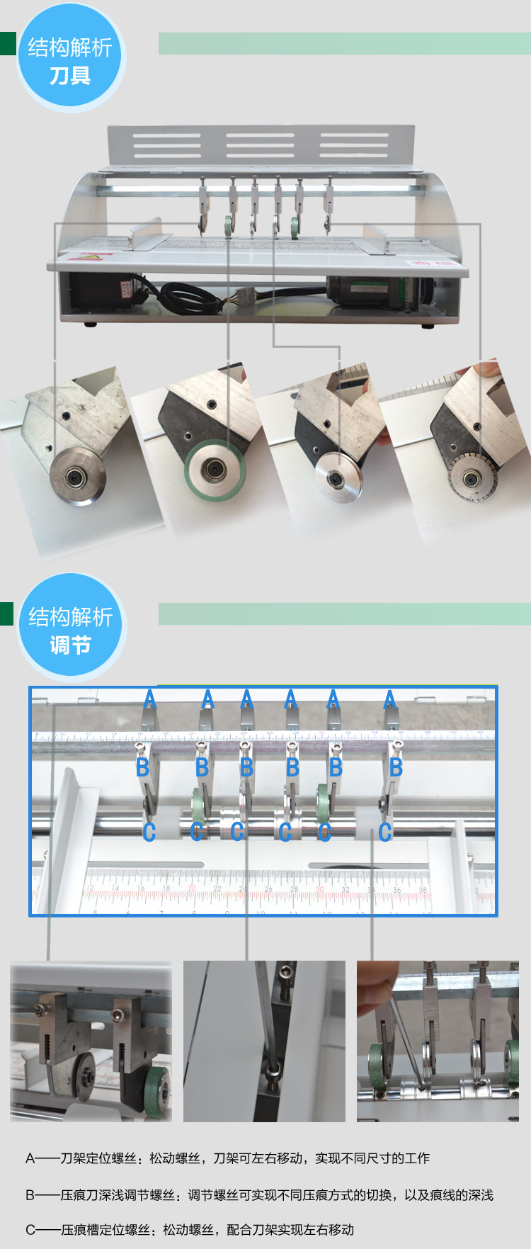 人性化设计压轮、压痕压力,压痕位置任意调节更方便。