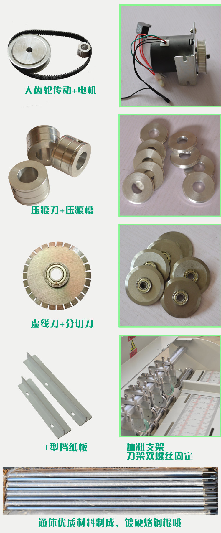 采用圆压圆技术,压痕清晰饱满、纸张不破裂,可以自由选择单条多条压痕工作,适合更多需求。