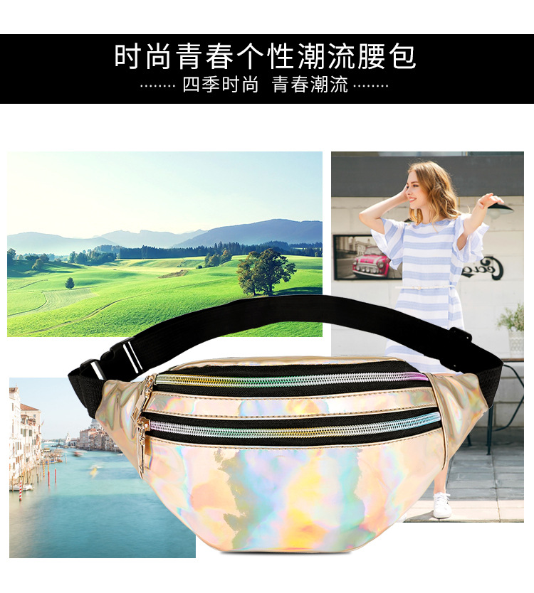 Новая женская поясная сумка с лазерным эффектом, многофункциональная сумка из PU, сумка через плечо с цветным дизайном, оптовая продажа
