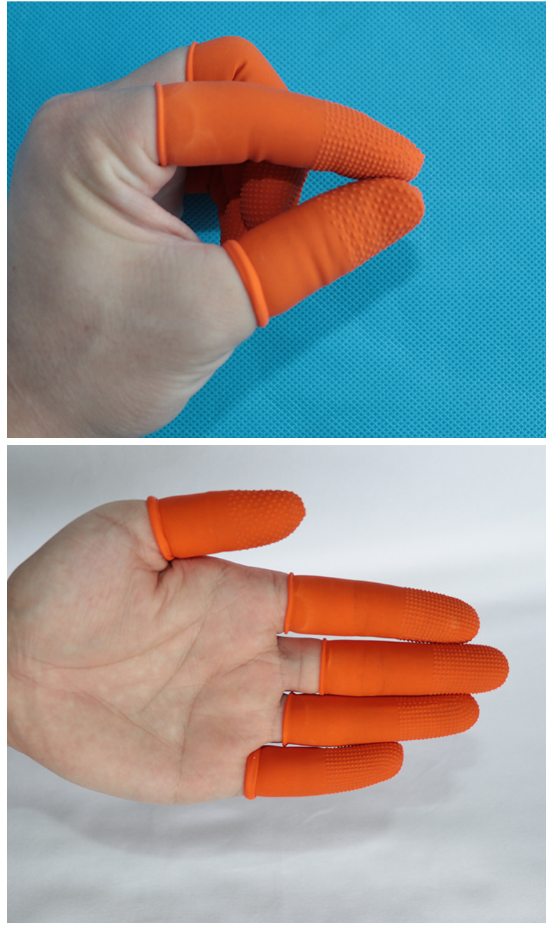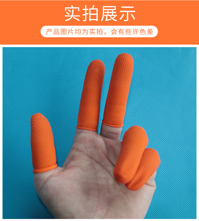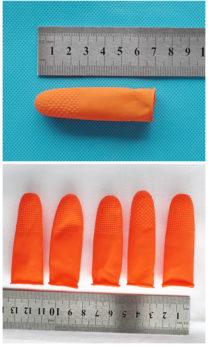 Фабрика Xinli Dayuan оптовая продажа одноразовых латексных нескользящих накладок на пальцы оранжевого цвета, резиновая пыльная и безпорошковая накладка на палец