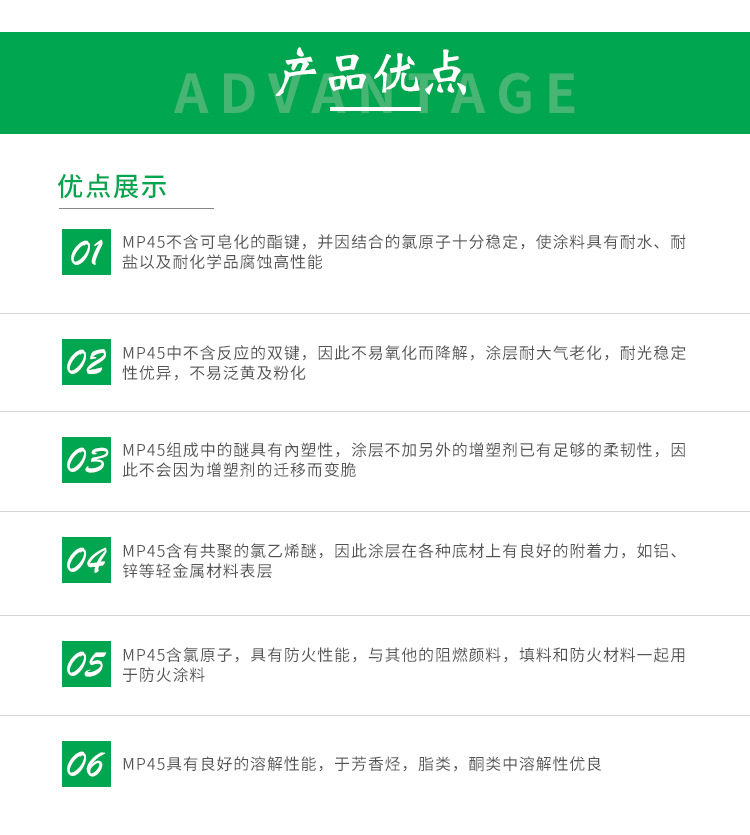 Внутренняя смола Mp45 хлорэфир, обеспечивает хорошую водо- и соль-устойчивость, а также устойчивость к химической коррозии