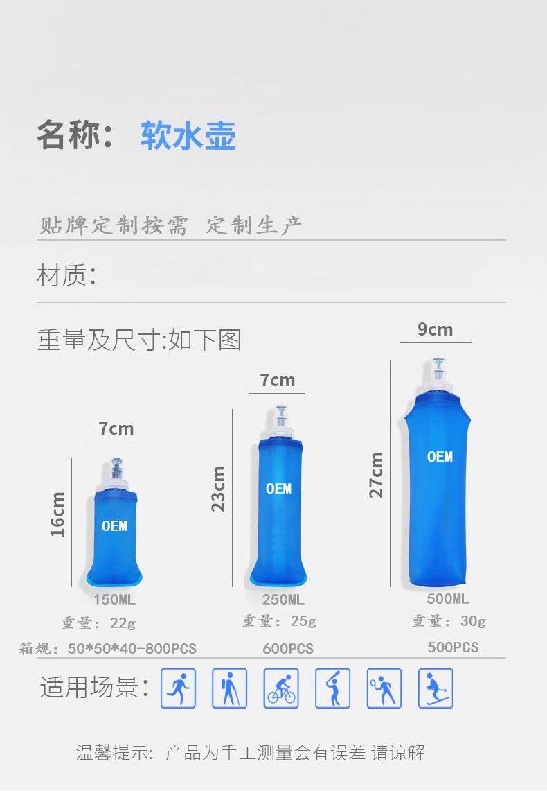 Кросс-браузерная складная мягкая бутылка для воды на открытом воздухе для питья TPU мягкая бутылка для спорта