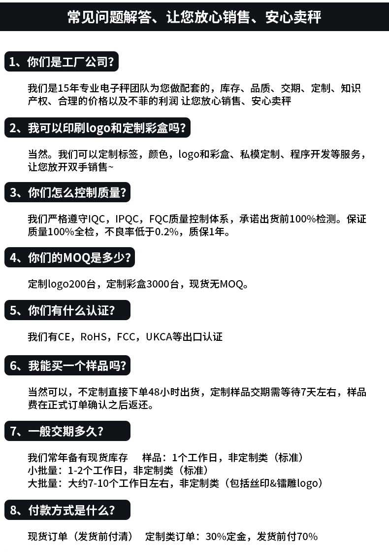 产品功能:单位切换/去皮清零/过载保护/低电显示/触屏按键/自动关机