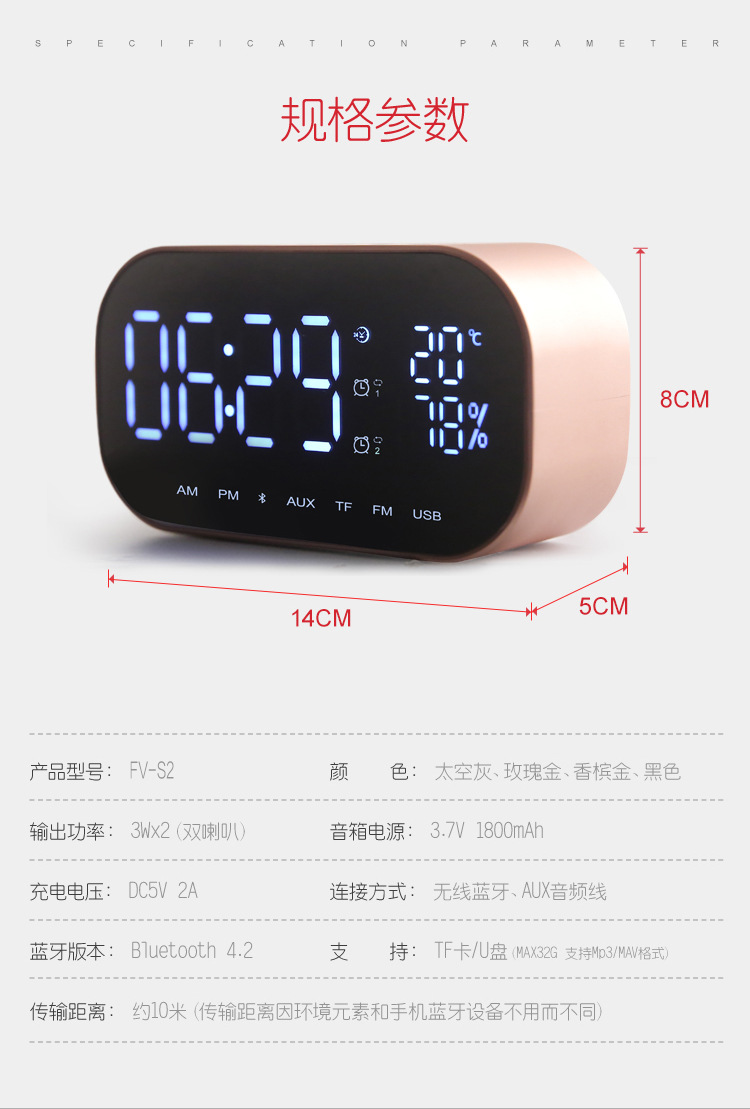 型号:FV-S2时钟蓝牙音箱