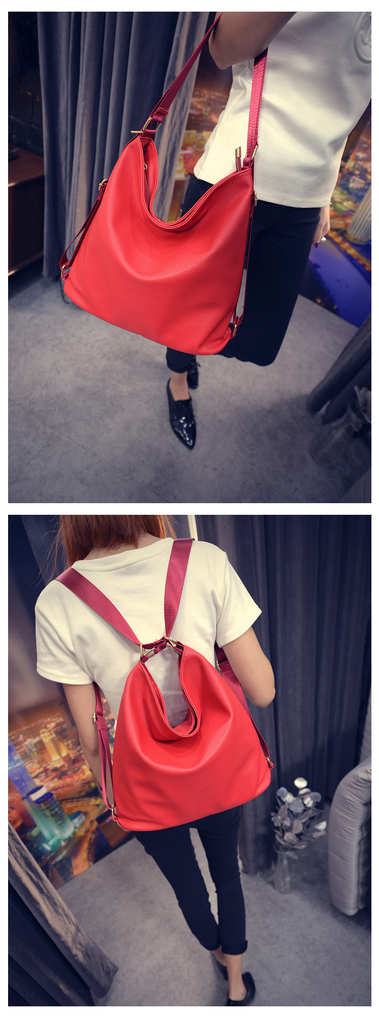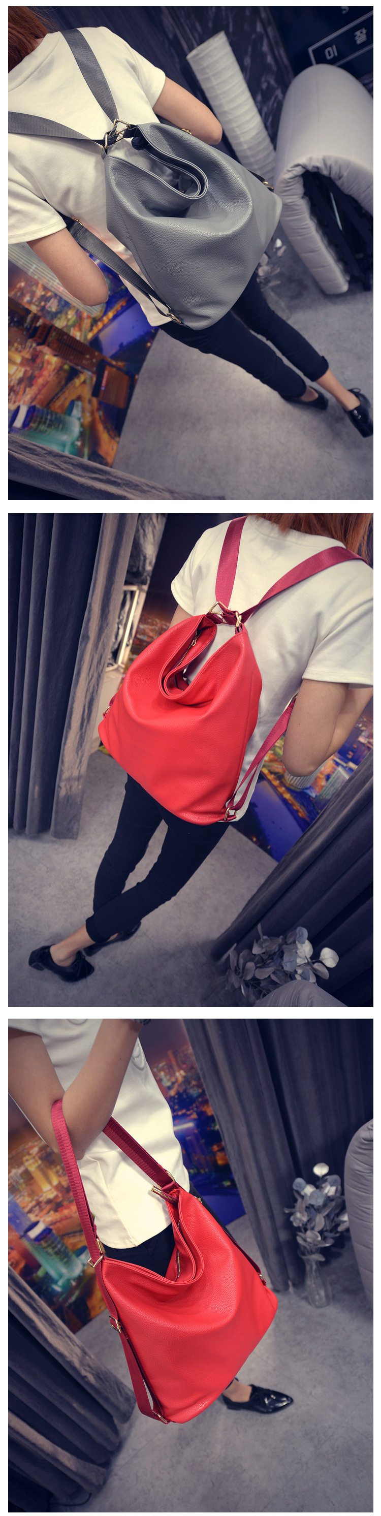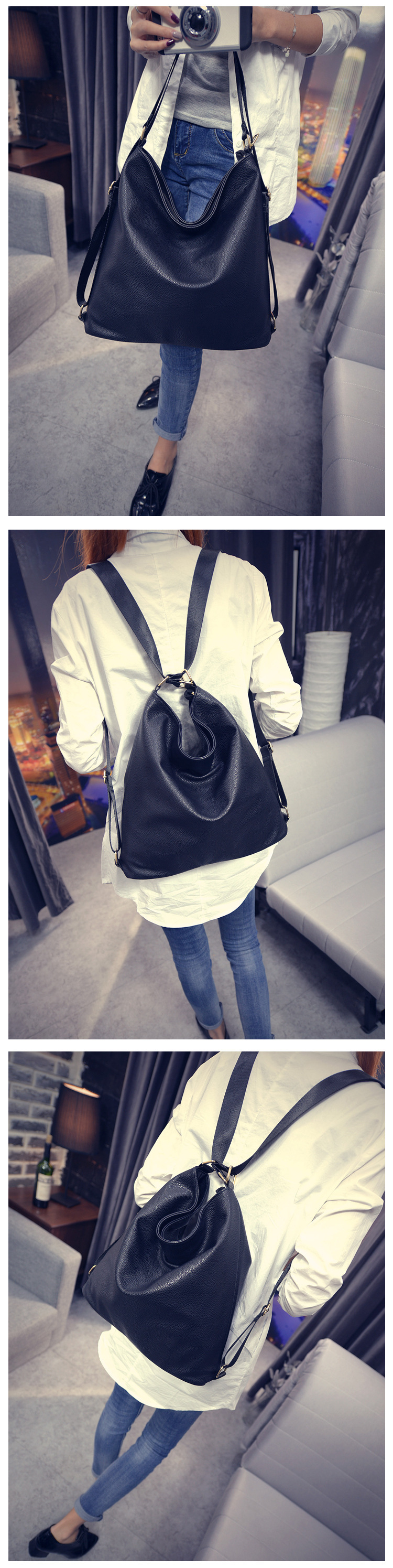 Сумка из промытой ПУ кожи три плеча женская оптовая простая сумка