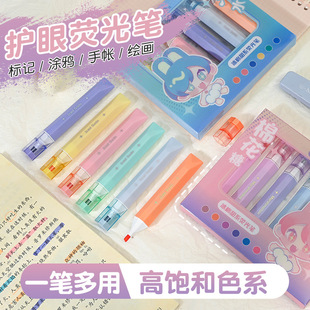 6 цветных двухсторонних флуоресцентных ручек, цветные маркеры, маркер для выделения, оптовая продажа канцелярии