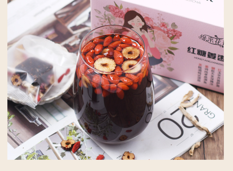 Сырьё и ингредиенты Brown sugar, red dates, wolfberry, ginger, black wolfberry, mulberry, double red rose, etc