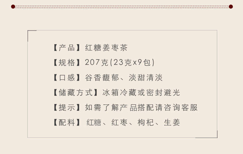 ![]() | Brown sugar ginger jujube tea [207g/box] | ¥6.0 / ≈ 73 ₽ | 651059 | 5817376239047 | |
