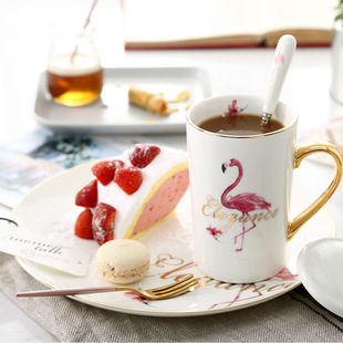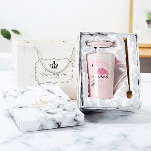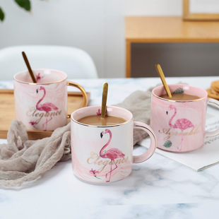 Кружка с фламинго с крышкой и ложкой, мраморный узор, оптовая пара, креативная кружка