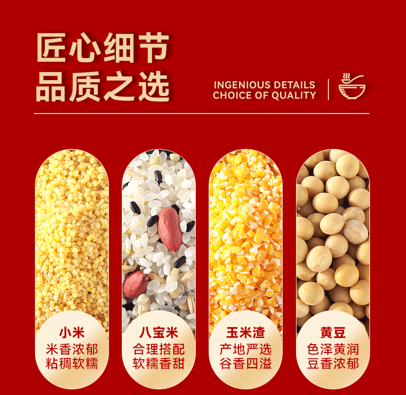 Сырьё и ингредиенты Brown rice, wheat kernels, soybeans, corn grounds, millet, brown rice, mung beans, barley seeds