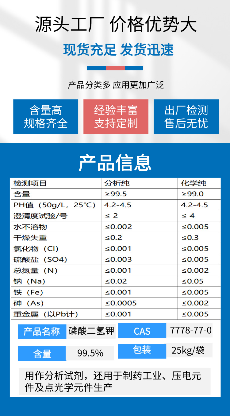 Реактивный калий дигидрофосфат для биокультуры, содержание 99.5, аналитическая чистота Ar, бесплатные образцы