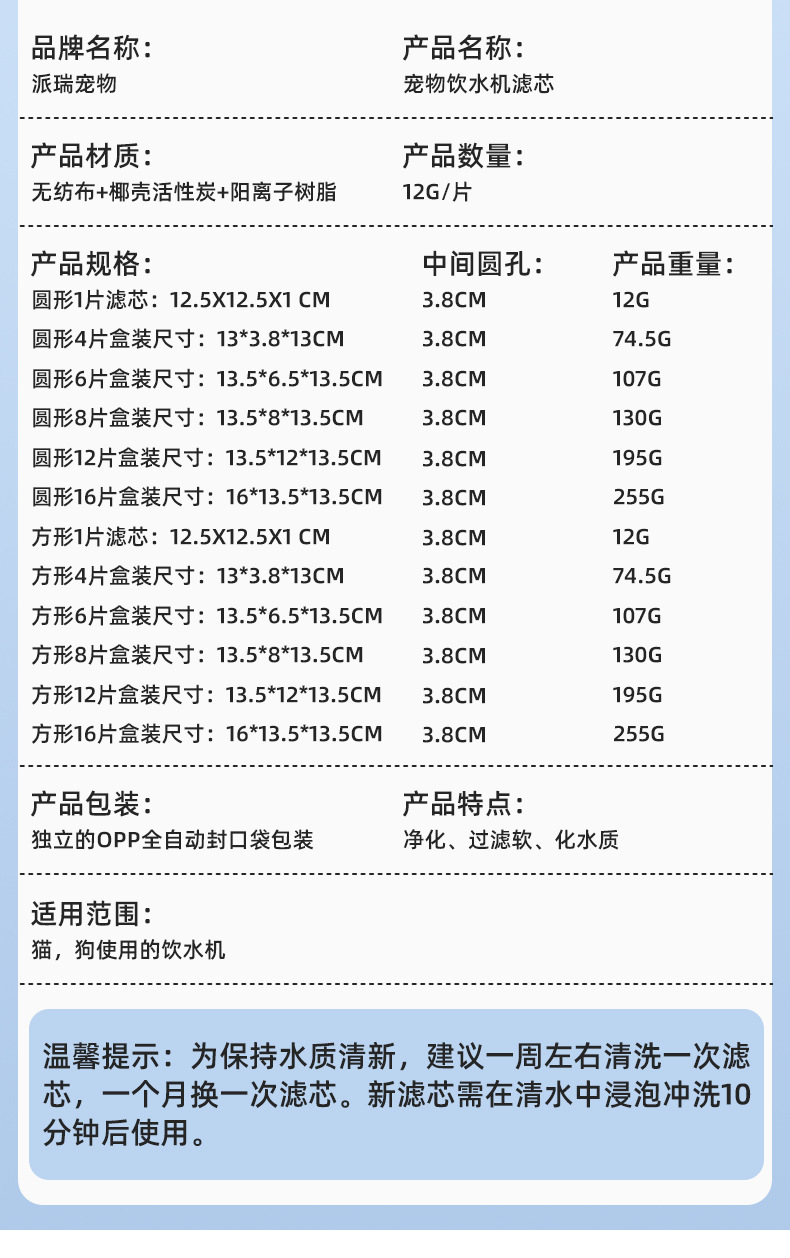 方形1片滤芯:12.5X12.5X1 CM 中间圆���:3.8CM 重量:12g