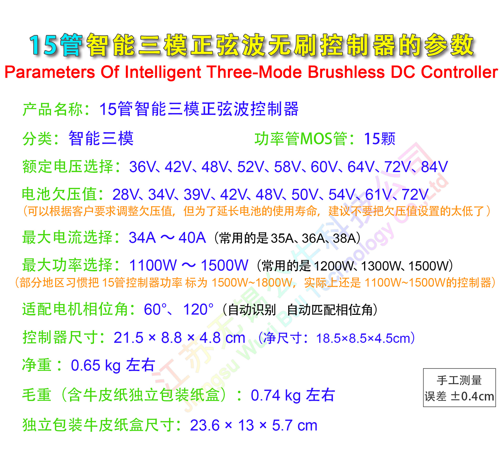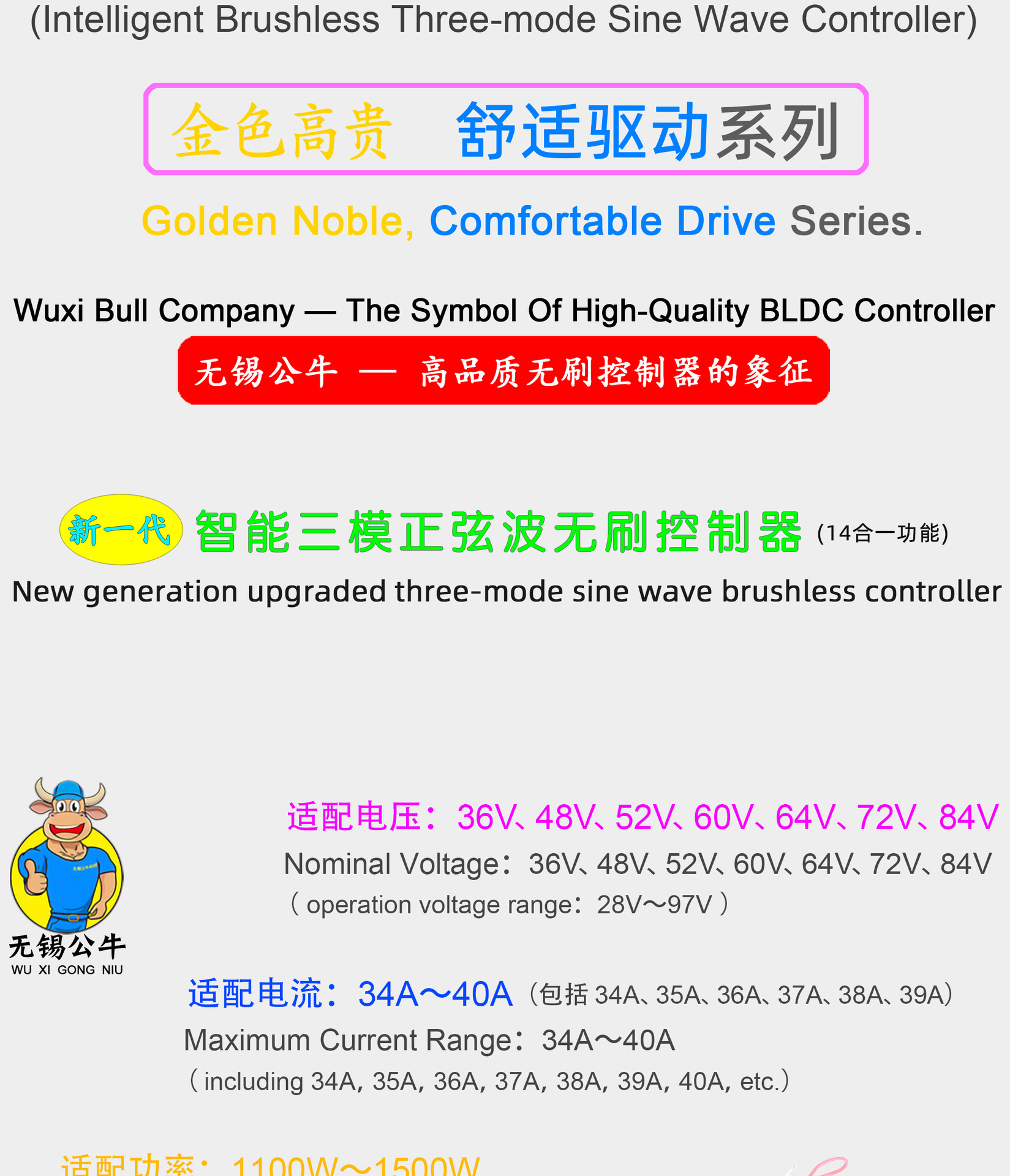📦 | 36v~48v~60v~72v~84v universal | 1200w~1300w~1500w (maximum current 34a~40a) | ¥99.0 / ≈ 1 204 ₽ | 30181 | 5547346744627 |