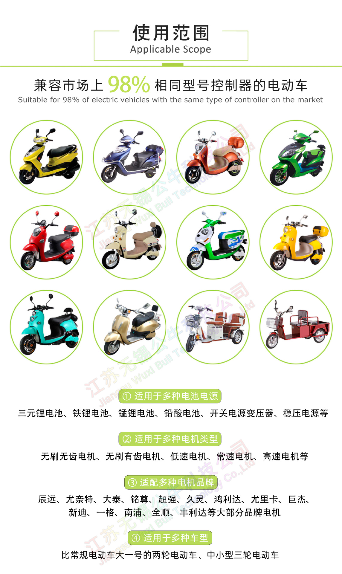 Рабочее напряжение 36V、48V、52V、58V、59V、60V、64V、72V、84V