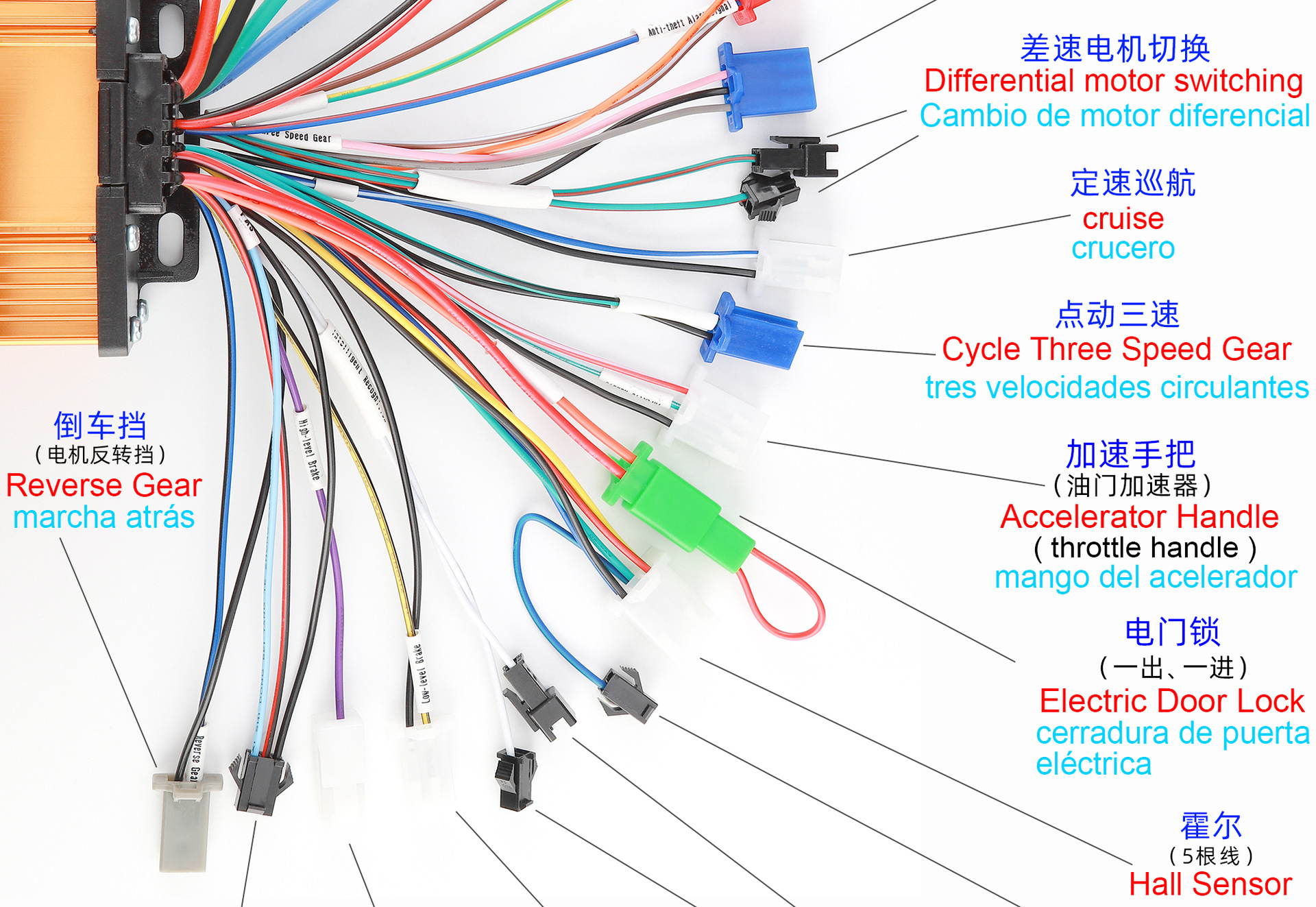 Функция Three-speed dialing, three-speed inching, pas assist, cruise, reversing, first-line lcd instrument, hall instrument, anti-theft alarm, high brake, low brake, etc