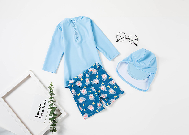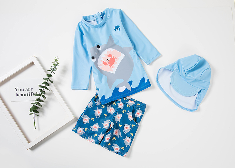 Детский купальник, корейский, раздельный, быстро сохнущий, защитная шляпа, плавки для мальчиков