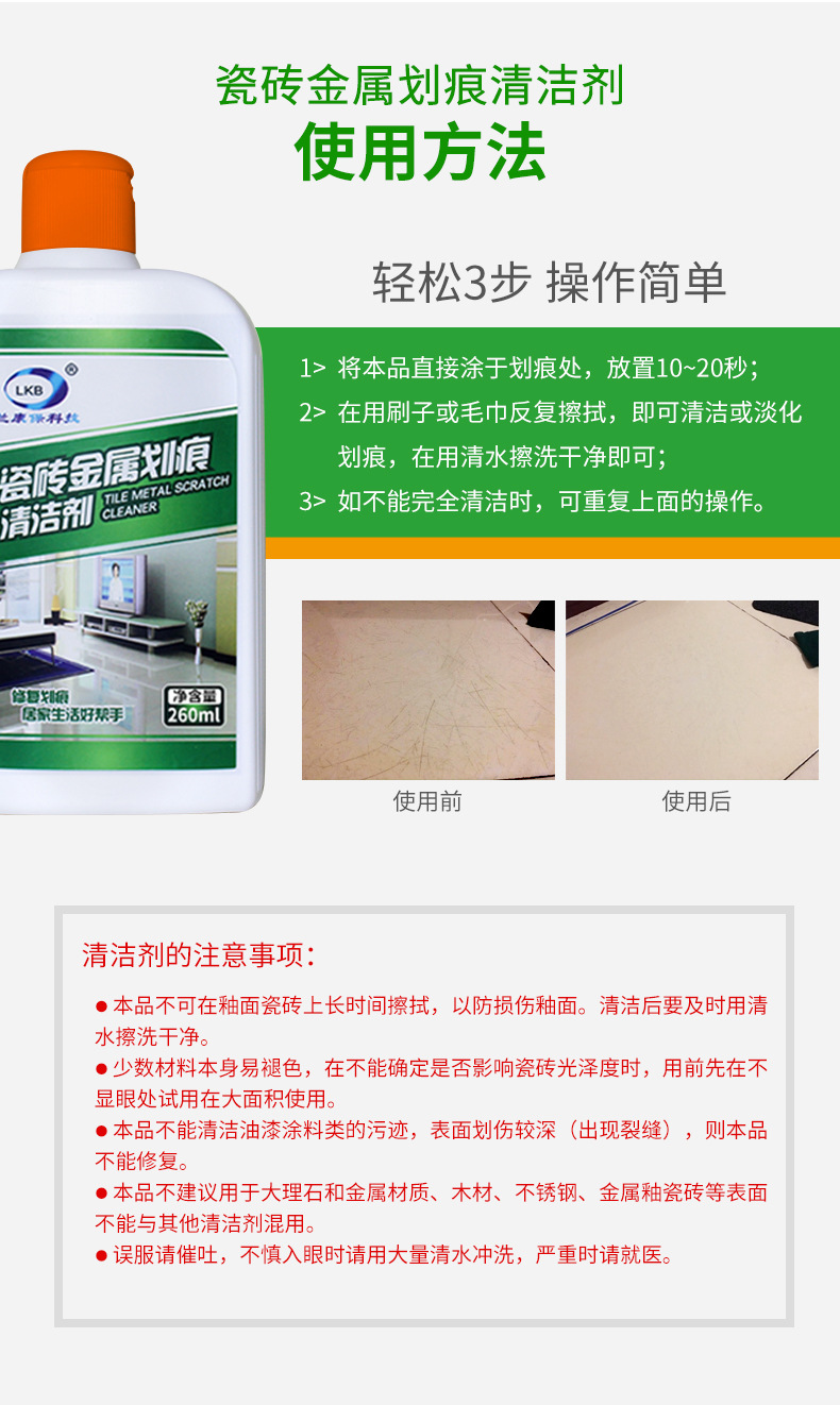 Очиститель для металлических царапин на плитке, агент для ремонта глазури