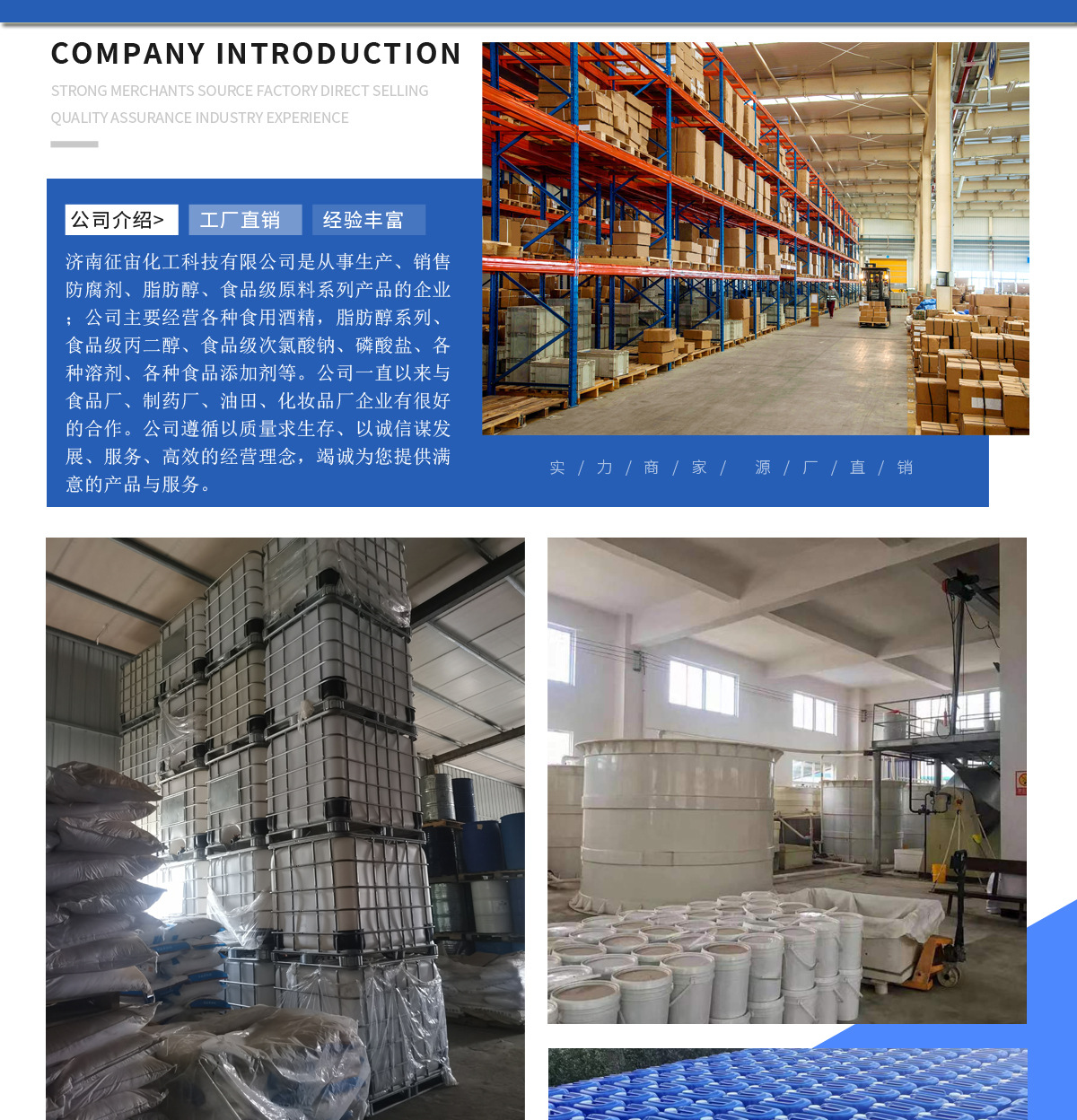 公司介绍济南征宙化工科技有限公司是从事生产、销售防腐剂、脂肪醇、食品级原料系