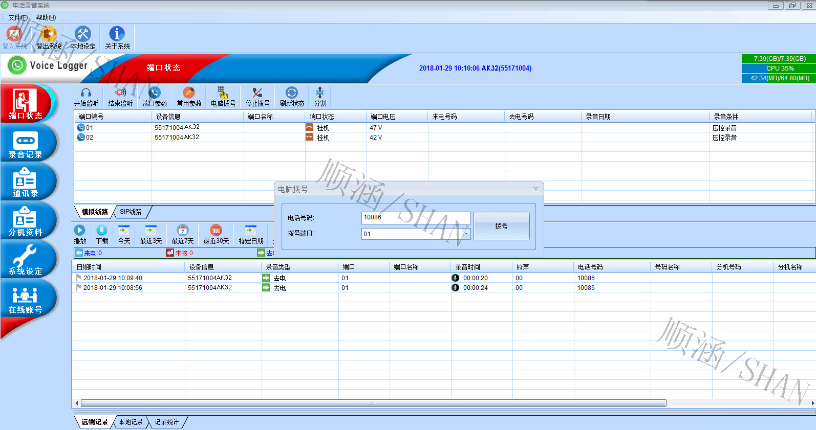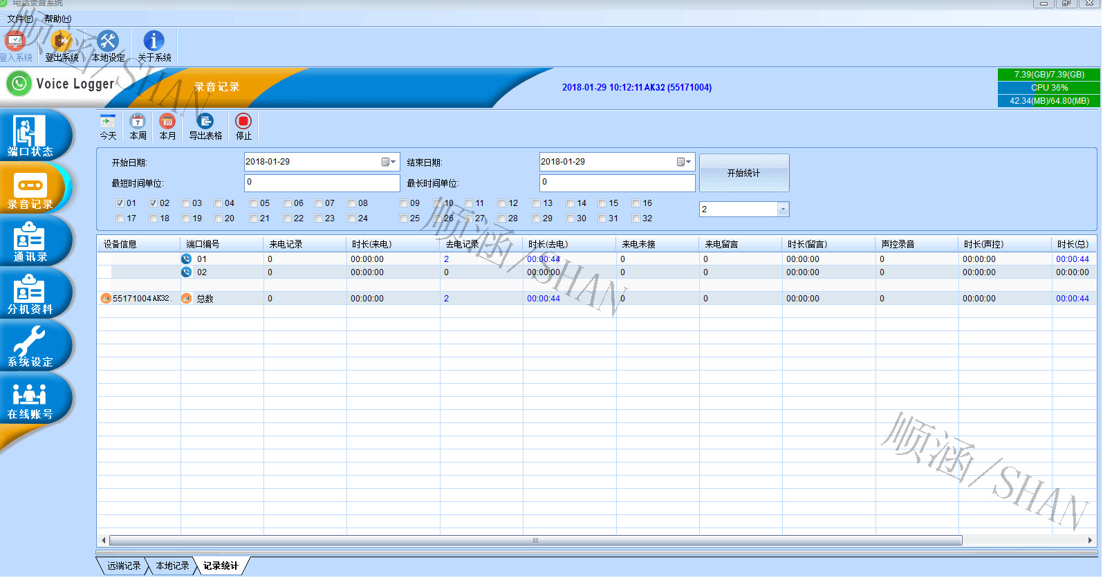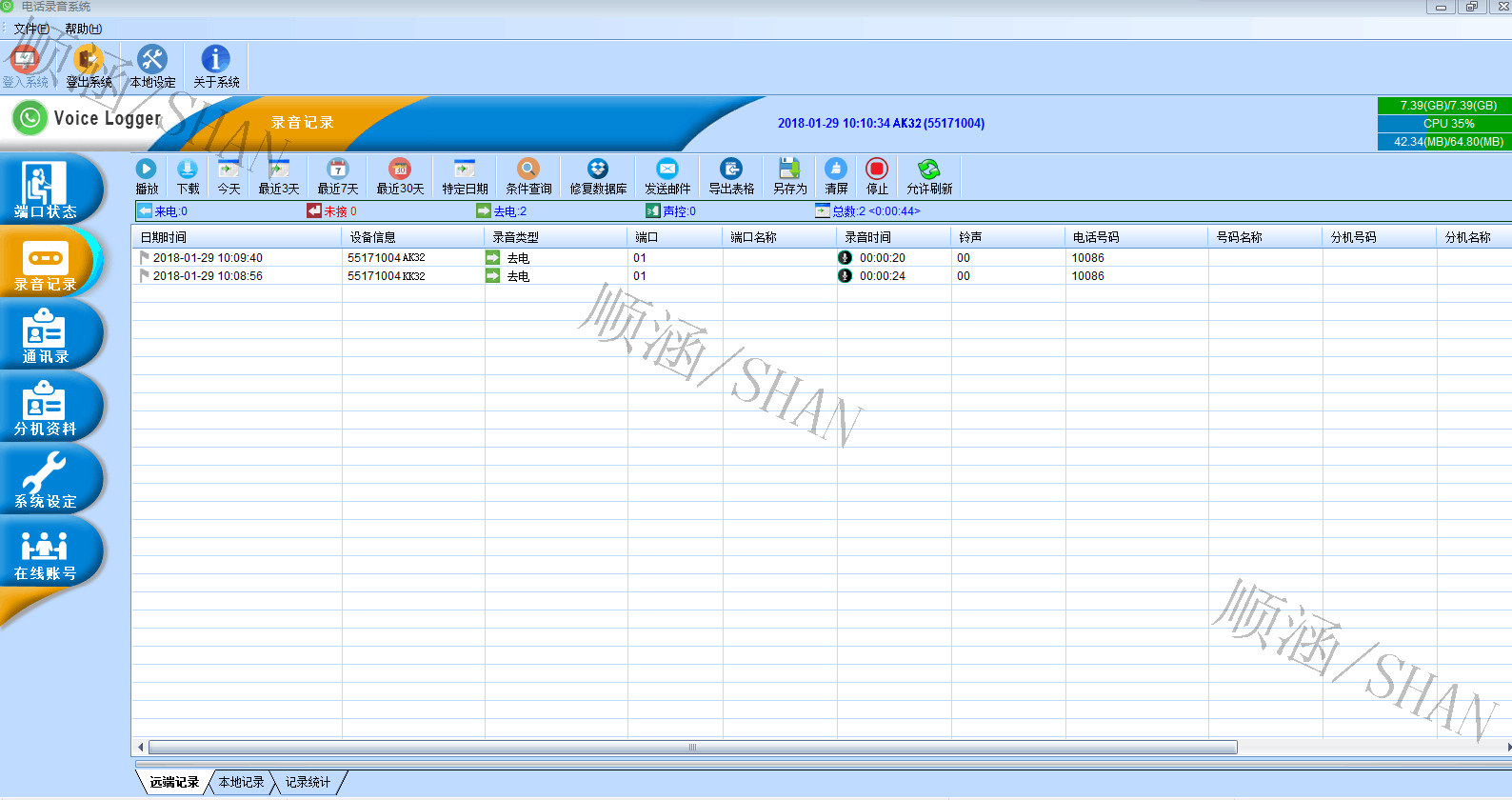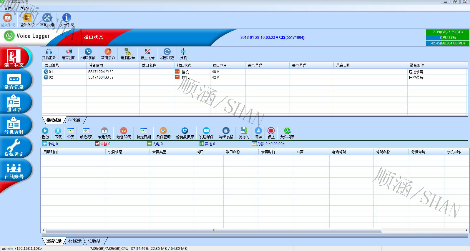 2.2进入管理端口界面:可以管理8到32部电话录音